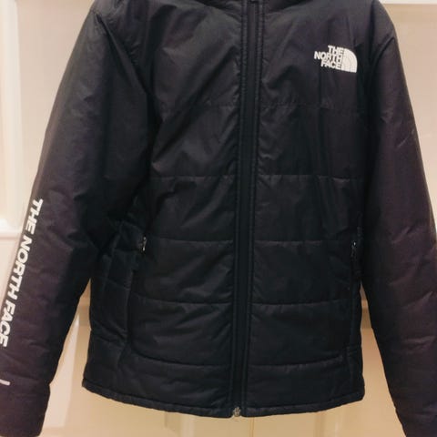 Intersportista viime talvena ostettu lasten North Face kevyt lämmin toppatakki. Takkiin merkitty XL koko vastaa käytössä n 152-158cm.