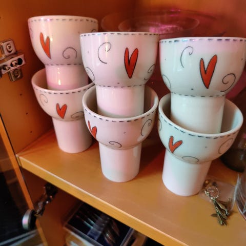 Hyväkuntoiset..käyttämättömät pikarit. Korkeus n 11 cm halk n 6.5 cm. vihertävänharmaat.
