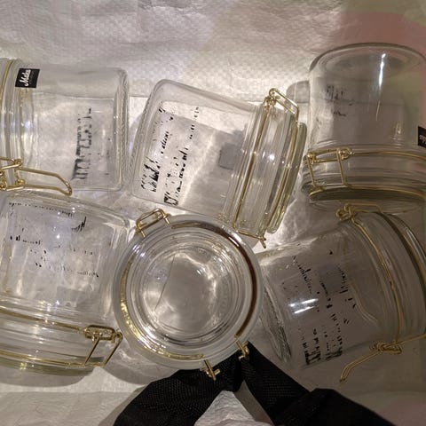 Eri kokoisia lasipurkkeja kaikenlaisille herkuille. Tee hilloa, sinappia, namuja, sienisuolaa, yrttisekoitusta....