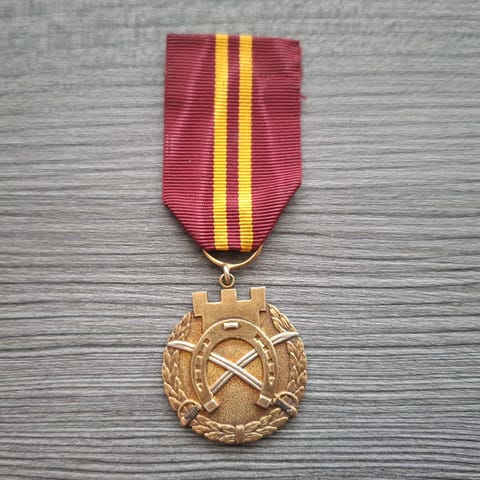 Hämeen Ratsujääkäripataljoonan risti. Ruuvimerkki, jonka korkeus ja leveys noin 3,7cm. Postitus onnistuu.