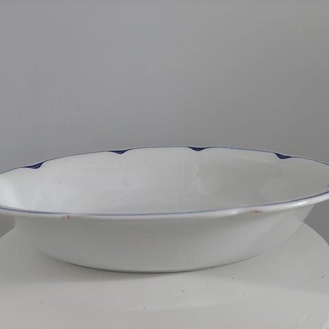 Arabian Pekka-sarjan ovaalin muotoinen tarjoiluvati piippuleimalla jonka korkeus on 3 cm, pituus 37cm ja leveys 25,5 cm