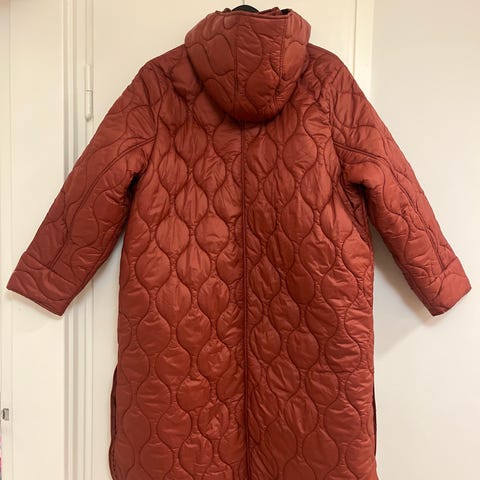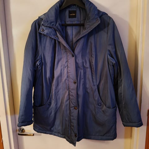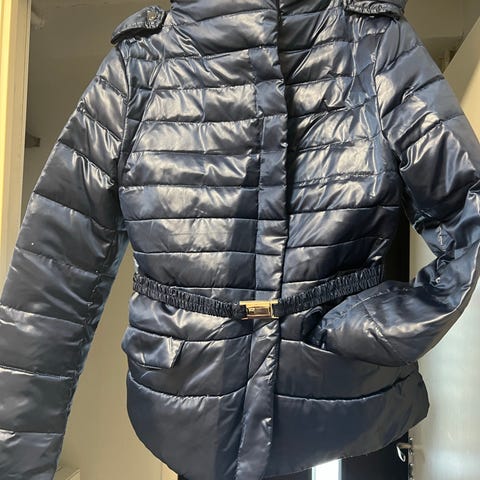 Selling a dark blue winter coat in good condition. Size L, very warm, for minus temperatures. Length is 100 cm (around knee-length).