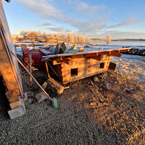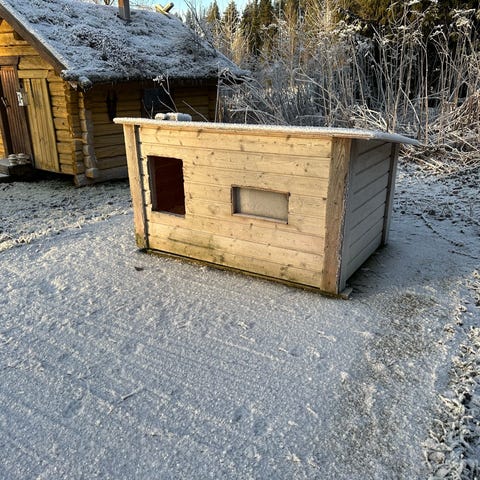 Eristetty lämmitettävä koppero. Ulkomitat alalistasta katon yläreunaan mitattuna. Takapuolen korkeus 120cm, etupuolen korkeus 127cm, leveys 178cm, syvyys 118cm. Aukon mitat: leveys 21cm ja korkeus 24,5cm. Aukkoahan voi sitten suurentaa mielensä ja koiransa mukaisesti. Hae pois!