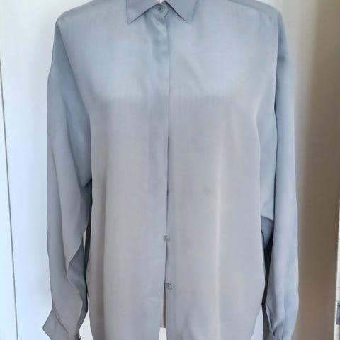 Käyttämättä jäänyt laadukas silkkipaita. On hiukan reilua kokoa itselleni. Ihanan pehmeää, joustavaa ja mattapintaista silkkiä (mulberry?).