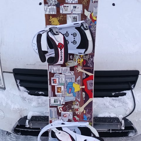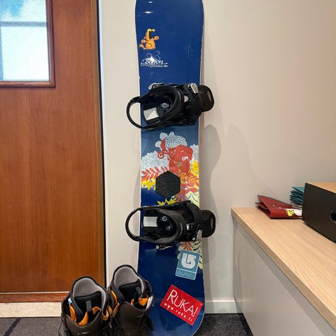 Kaippa nämä alkaa olemaan vintage kamaa jo, lauta muistaakseni vm -96, K2 Eldorado. Airwalkin 44 koon freeride kengät ja siteet Burtonin customit. Ride laukku mukaan. Ovat olleet n.20v varastossa.