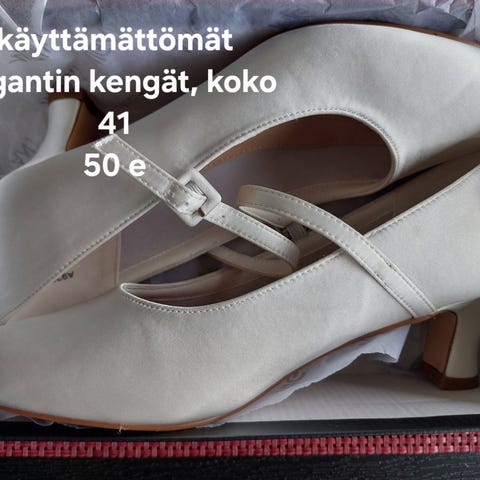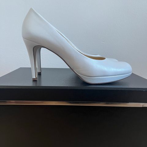 Yhden kerran hääkenkinä käytössä olleet valkoiset nahkaiset Tamaris korkokengät koossa 41. Muuten moitteettomat, mutta vasemman koron sisäpinnalla pieni nirhauma.