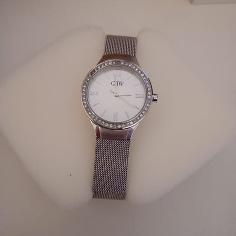 Myydään hopeanvärinen GHW -rannekello. Hihnan pituus säädettävissä.