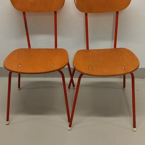 Hyväkuntoiset lasten koulutuolit 2kpl myytävänä. Putkirunko, joka molemmissa tukeva ja ehjä. Vaneri istuin sekä selkänoja. Myydään parina. Istuinkorkeus 38 cm.