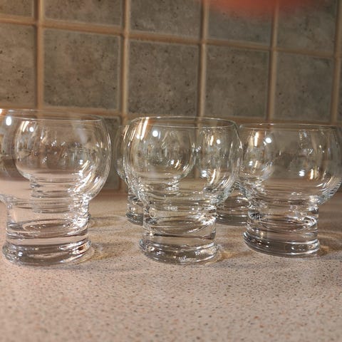 Riihimäen Lasi, Old King Cole Lasi 80 cl, kirkas. Erkkitapio Siiroisen suunnitteleman Old King Cole-sarjan suurikokoinen lasi. Korkeus 17 cm, suuaukon halkaisija 10 cm, tilavuus 80 cl. Tuotannossa vuosina 1972-1976.