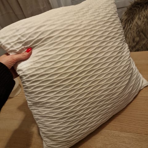 Tyynynpäällisessä on kieroja saumoja.