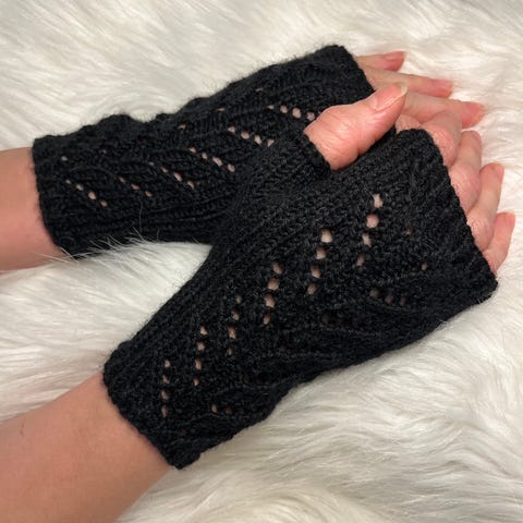 Käsin neulotut pörrölangasta, käyttämättömät. Lev. Peukalon alta 10 cm, pituus 24 cm.