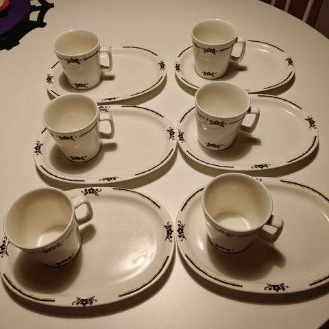 Hyväkuntoiset aamiaissetit kultakeramiikalta .
