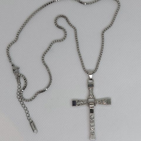 Uudenveroinen risti kaulakoru. Nyörin pituus 27 cm. Korun korkeus 3,5 cm ja leveus 3 cm.