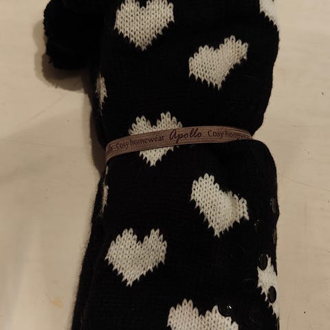 Hyvin vähän käytetyt ja käyttämättömät sukat, hanskat ja säärystimet. Hanskojen pituus 17 cm ja ne sopivat mainiosti loppusyksyyn, alkutalveen tai alkukevääseen. Voi käyttää myös toisten hanskojen päällä. Tupsusukat ovat jarrupohjaiset ja ovat kokoa 36-39. Sopivat toki myös 40 jalkaan. Villasukan on saatu lahjaksi ja ovat arviolta kokoa 39-41. Valkoiset pörrösukat ovat kokoa 36-39. Säärystimet ovat 74 cm pitkät. Kaikin puolin hyvä joululahja! Hinta 3€/tarjous. Voi tarjota myös settihinta. Nouto tai postitus.