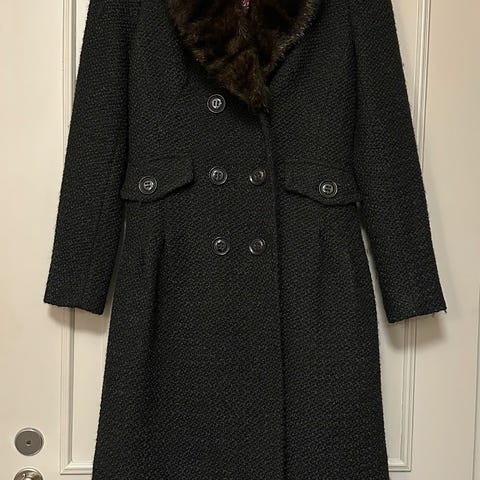 Lindex takki musta naisten koko 40. Takissa on kaksirivinen napitus ja klassinen kaulus. Hyvänkuntoinen paksumpi villakangastakki. Kaunis leikkaus. Kai-kai 50 cm. Hihan pituus 60cm.