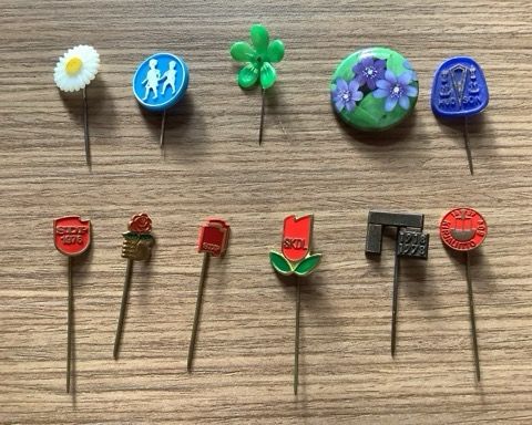 7 ehjää ja 2 hieman rikkinäistä vappukukka neulamerkkiä.