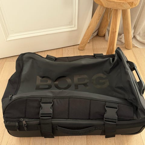 Erikoislaukku jonka saa avattua pystyyn jolloin puvut voi säilyttää esim. hotellissa laukussa. Alinna oma lokero kengille. Omat lokerot solmioille ja liinoille. Omat kaksi pussia pyykkiä varten. Sopii erittäin hyvin miesten ja naisten (juhla)pukujen kuljetukseen. Alla neljä pyörää. Voi työntää/vetää tai teleskooppi kahvalla veto kahdella pyörällä. Materiaali erittäin tukevaa kankaantyypistä. Uusi yli 500€.