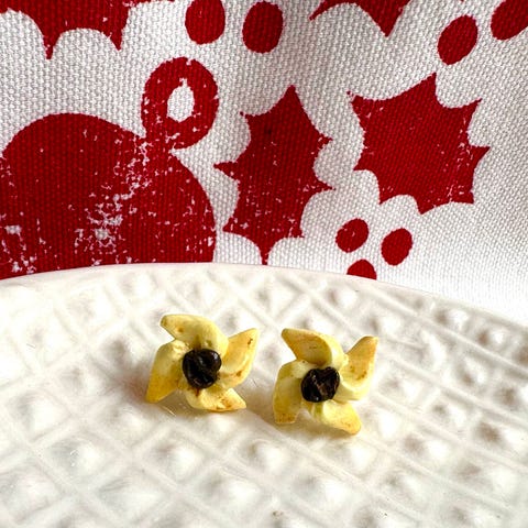 Myydään erilaisia käsintehtyjä jouluaiheisia nappikorviksia. Ei sisällä nikkeliä.