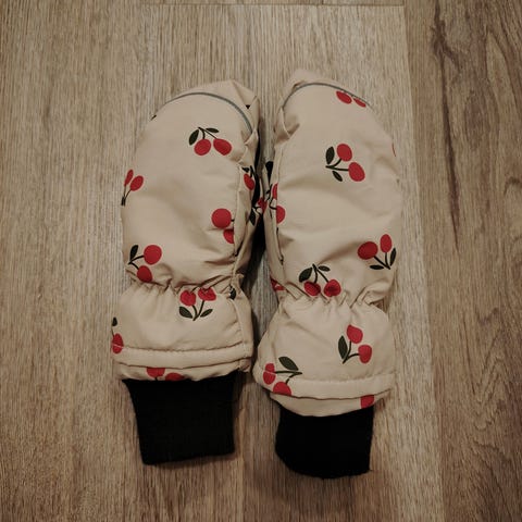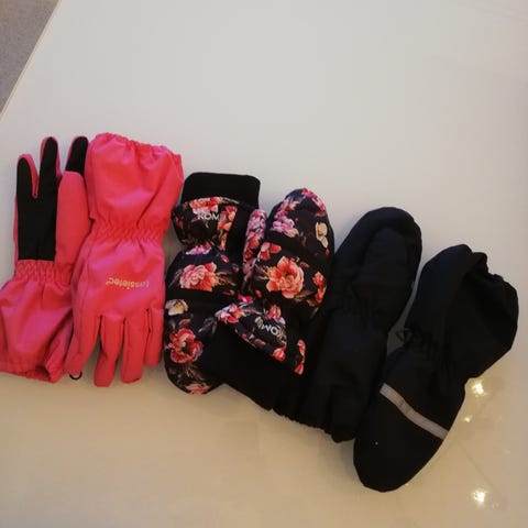 Mustat lasten talvikintaat. Kokomerkintä 6-7.