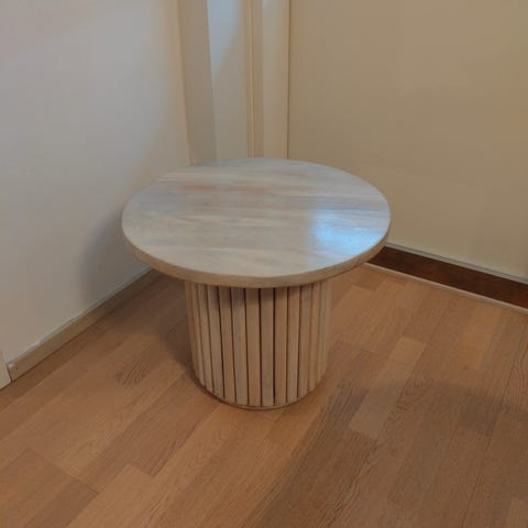 Aivan ihana ja rouhea mangopuinen sohvapöytä isoilla, mustilla pyörillä. Mangopuun pinta on elävä jokainen yksilö on uniikki, ja pinnassa voi olla jälkiä. Jotain pientä itse aiheutettua jälkeä voi löytyä pinnassa, mutta kaikenkaikkeaan ei juurikaan uudelle häviä:) Ostettu uutena Vekeltä noin 4v sitten (ovh. 395e). Nouto Ritaharjusta.
