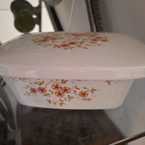 Myydään norjalqiset käsinmaalatut Figgjo Lotte kannellinen sokerikko ja kermakko, jonka kaatonokka ei priima (viimeinen kuva).
