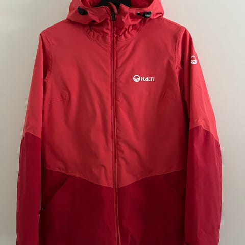 Halti Joy drymaxx lasketteluanorakki kokoa 38. Takissa on tuulen- ja vedenpitävä DrymaxX® -materiaali ja lämmin Microtherm® vanu. Pitkä sivuvetoketju ja lumilukko. Etutaskun valkea koristetere osittain lohjennut. Pieni tahra edessä. Lähtenee pesussa.