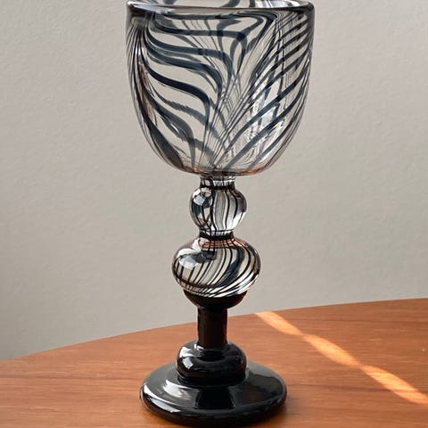 Nuutajärveltä ostettu melko vanhan oloinen pikari, joka muistuttaa Kaj Franckin pokaaleja, mutta takuuseen suunnittelijasta ei voi mennä.