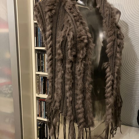 Beessi neuletakki tekoturkis etuosalla. Kokopitkä vetoketju. Koko M venyy vähän neule selkäosasta. Ympärys kainaloista 88cm, hiha kainalosta n.55cm. Postikulut ostajalle.