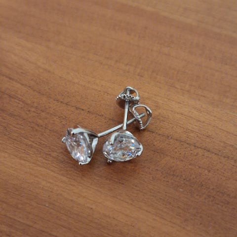Uudet kauniit hopeakorvakorut, merkinnät "925". Koristeltu pienillä Cubic Zirconia-kivillä.