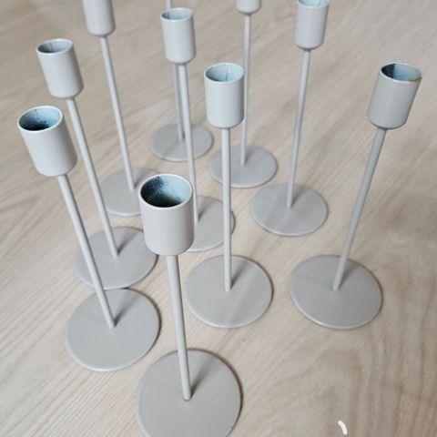 Kaksi mustaa takorautaista korkeaa kynttilänjalkaa. Kaksihaaraisen korkeus 39 cm ja yksihaaraisen 33 cm. Todella jykevää suomalaista tekoa! Hyvässä kunnossa, mutta ihan pieniä pintanaarmuja ollut alusta asti eivätkä näy käytössä mihinkään.