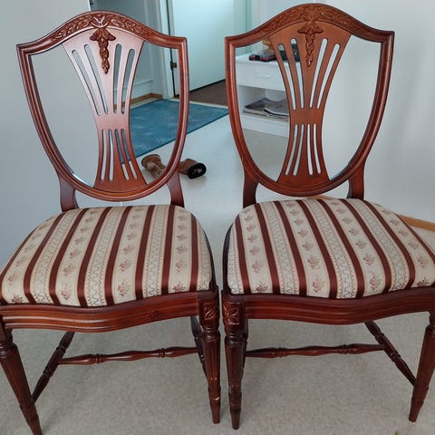 Myydään 6kpl koivutuoleja. Pieniä käytönjälkiä näkyy.