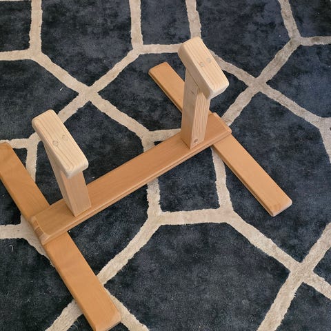 Kahvaosasta saa otteen puristamalla. Tämän lisäksi kahva vielä kulmassa, joten on merkittävästi parempi asento ranteille, kuin tasaiset puut. Ovat todella tukevat, mutta samalla myös kevyet kuljettaa mukana harjoituksiin. Kumimatto pohjassa takaa ettei puut luista millään lattialla. Saadaan riittävän kapealle, että käyttäjäryhmä on aina pienestä lapsesta isompaan. Riittävän korkeat, että jalkojen tuonti puiden välistä esim kulmapitoon helppoa (tämä vaikeaa liian matalilla puilla) Testattu että tukeva esim meksikolaista tehdessä. Kahvaosa riittävän leveä, että seisten tehtävät tasapaino liikkeet ovat helppo suorittaa. Puut toimivat siis kilpailit 1-luokassa tai 4-luokassa. Kestävää puuta!!!