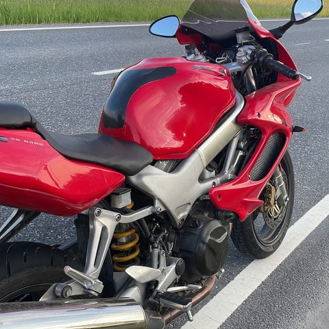 Oikean puoleinen sivukate harmaa. Pienet naarmut jotka saa luultavasti myllytettyä pois. Etujarrukahva, kytkinkoppa, kytkinkopan suoja sekä tangon pää.