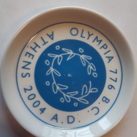 Myytävänä "Parade of Nations" Olympia lautanen Atlanta 1996. Lautasen halkaisija on 8 cm, takana ripustuskoukku ja mukaan saa myös muovisen telineen.