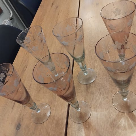Ei moitteita kunnossa. Kauniit sirot kuohuviinilasit tästä käyttöön.