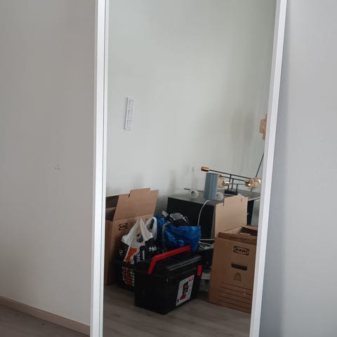 40 x 17 cm kokoinen, lampun muotoinen ranskalainen seinätarra peilipinnalla, päällysteenä ei peililasi vaan polymetyylimetakrylaatti.