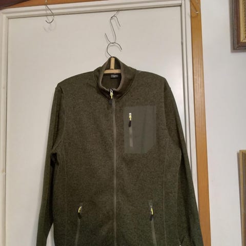 Koko L, jossa on pehmeä vuoraus ja neuloshihat. Vaatteessa on vetoketjukiinnitys ja koristeelliset saumat. Sopii ulkokäyttöön ja viileämpiin sääolosuhteisiin.
