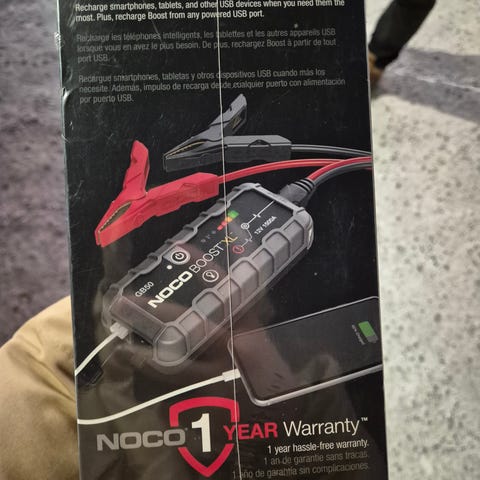 - GBX45 apukäynnistin, akkukaapelit tukevilla pihdeillä, USB-liitäntäjohto, säilytyspussi, käyttöohje