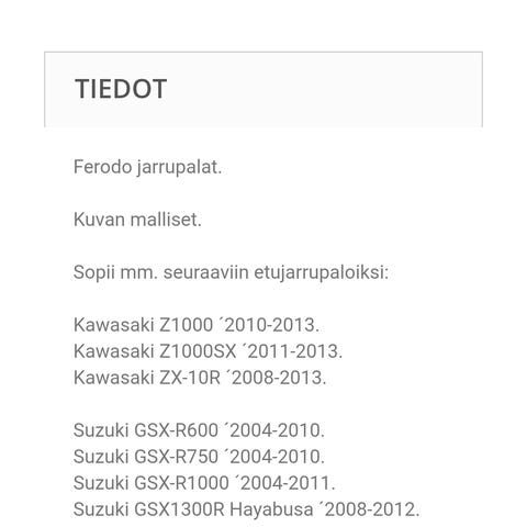 2.SBS 23-2015 Kawasaki KLF/KLT/KLX jarrukengät hinta 10,-