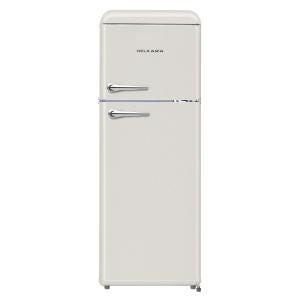 Tyylikäs punainen ja mustana retro jääkaappi/pakastin. Huomioi laitteen asennuksessa laitteen mitat ! Laitteen mitat korkeus190,1 cm / rungon leveys 59,5 cm. Kansilevyn leveys 60,5cm. Ovissa upeat kromatut kahvat, Oven kätisyys on aina oikea, kätisyyttä ei voi vaihtaa. Energialuokka F.