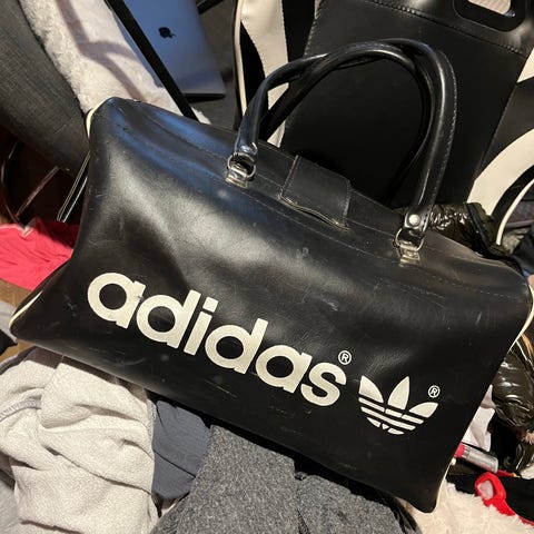Erittäin tyylikäs Adidaksen putkikassi (ei tule vastaan jokaisen olalla!) Jostain 90- luvulta veikkaisin. Materiaali Todella kestävää tekonahkaa. Kahvat/remmi ehjiä, vetoketjut toimii. Päädyssä vetoketjullinen tasku, kuin myös sisällä toisen laidan pituinen vetoketju tasku. Pohjassa parissa kohtaa kulmia pienenpienet kulumat muuten todella nätissä kunnossa sisältä/ulkoa! Yrittänyt etsiä laukusta enempi tietoa mutta aika heikolla menestyksellä.. en ainakaan Suomessa myynnissä olevia ole löytänyt. Jos tietoa löytyy sitä mieluusti kuuntelen! Mahd.postit lisätään hintaan.