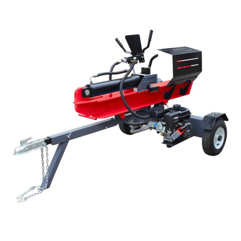 Halkomakone 28T halkaisuvoimalla. Vetoaisan sekä isojen 16" renkaiden ansiosta halkomakoneen siirtäminen haluttuun paikkaan on helppoa.