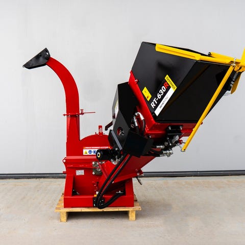 Uusi traktorihaketin hydraulisilla syöttörullilla. Tästä juuri vaivattomammaksi ei hakettaminen muutu. Syöttörullat hoitavat oksien syöttämisen terille, jolloin käyttäjän tehtäväksi jää vain asettaa oksat syöttösuppiloon.