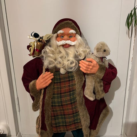 Koristeellinen joulupukki. Pukin korkeus on 31 cm ja leveys 20 cm. Uusi.