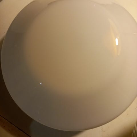Siisti ja toimiva kattovalaisin. Lamppuun tulee yksin poltin. Tänään 25.10.2023 ostettu kaksi uutta LED-poltinta, eli toinen poltin tulee varalle. Valaisimesta löytyy pistotulppa. Lasilevy roikuu 3 vaijerin avulla.