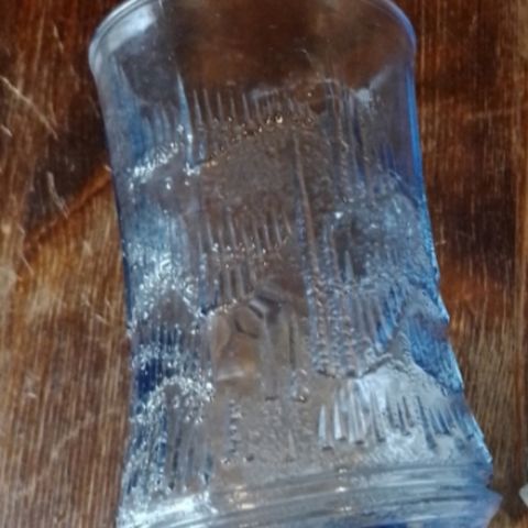 Riihimäen lasin sininen juomalasi. Pieni särö, mikä näkyy viimeisessä kuvassa. Ei haittaa käyttöä, eikä satu sormeen. Ei huomaa herkästi.