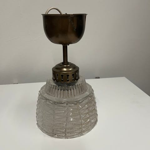 Lival kattovalaisin 70-luvulta. Lasiosa ehjä, peltiosa maalattu jälkeenpäin. Saa ”sokeripalalla” kytkettyä.