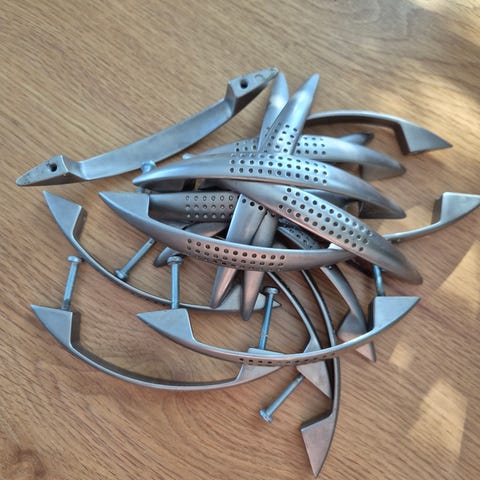 Nuutajärven tuotantoa. Viisi kappaletta, virheettömiä Heikki Orvolan vuonna 1969 suunnittelemia Herttua jälkiruoka maljoja. Tuotannossa 1970-1990. Korkeus 15,5 ja halkaisija 9,7. Yhteishintaan 25 euroa.