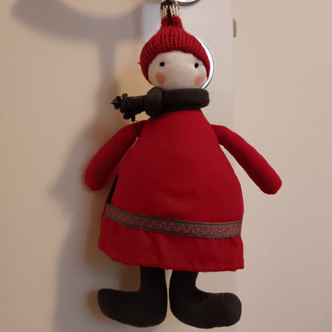 Maksimi leveys 25 cm, korkeus keskeltä ilman lenkkiä 22 cm. Tummanpunainen osa on tasku / voi käyttää taskuna: 4 euroa.