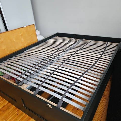 Joko tavallinen sänky "katoksella, johon saa esimerkiksi verhot,